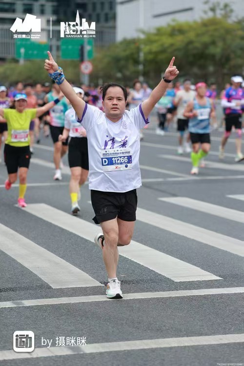 2015年,深圳前海深港现代服务业合作区正值蓬勃发展之际,韦天贵在此注册成立了天盛物联科技有限公司。同年的12月14日,他站上了第一届南山半程马拉松的起跑线,完成了人生的第一个21.0975公里。