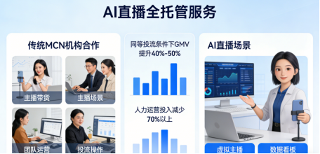 比如电商领域的AI直播全托管服务,同等投流条件下,AI直播能达到传统MCN机构合作GMV的40%-50%,还能让人力和运营投入减少70%以上;金融领域的AI智能托管服务,银行只需提供业务目标、预算和客群,AI智能体就能自动完成客户对接、流程优化等全环节工作,最终按交易规模增长的比例收费。