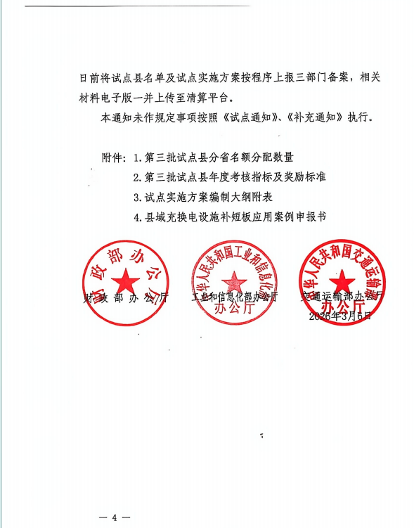 近日,财政部、工业和信息化部、交通运输部联合发布《关于开展 2026 年县域充换电设施补短板试点申报有关工作的通知》,以联合试点、绿电激励、高效落地为核心举措,加快补齐农村地区公共充换电设施短板,释放县域新能源汽车消费潜力,为乡村新能源基础设施高质量发展划定战略方向。作为物联网与新能源充电领域的创新型企业,天盛物联紧跟国家战略导向,以前瞻的光储充技术布局精准响应绿电应用政策,凭借成熟的项目落地经验与深度属地化服务能力,为县域充换电设施建设提供全链条解决方案,以科技力量助力构建农村新能源充电新生态。
