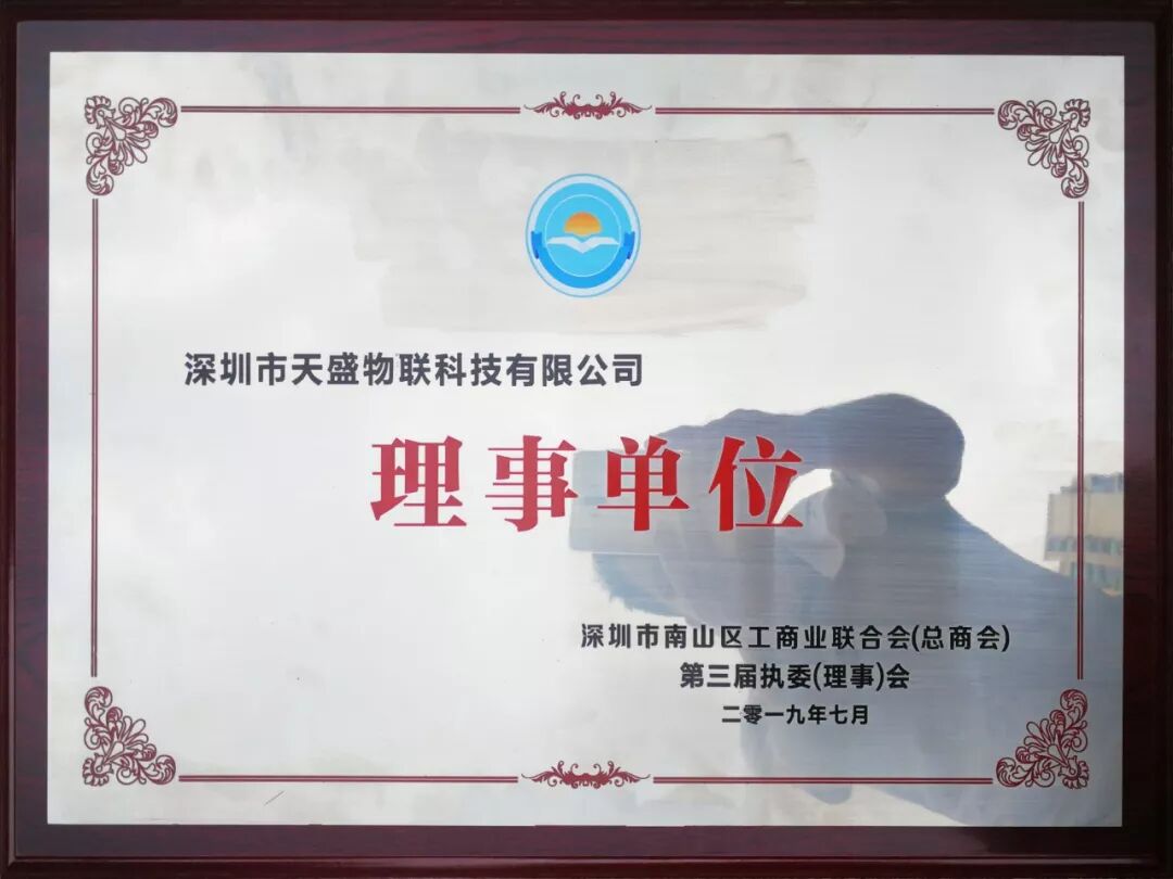 同时会议通过举手表决的方式全票通过了增补深圳市天盛物联科技有限公司等为南山区工商联(总商会)理事单位,区委常委、统战部部长鲍晓晨,区工商联(总商会)主席(会长)熊建明,区工商联党组书记吴燕珊分别给深圳市天盛物联科技有限公司总经理韦天贵等本届新增补的理事单位负责人授牌。