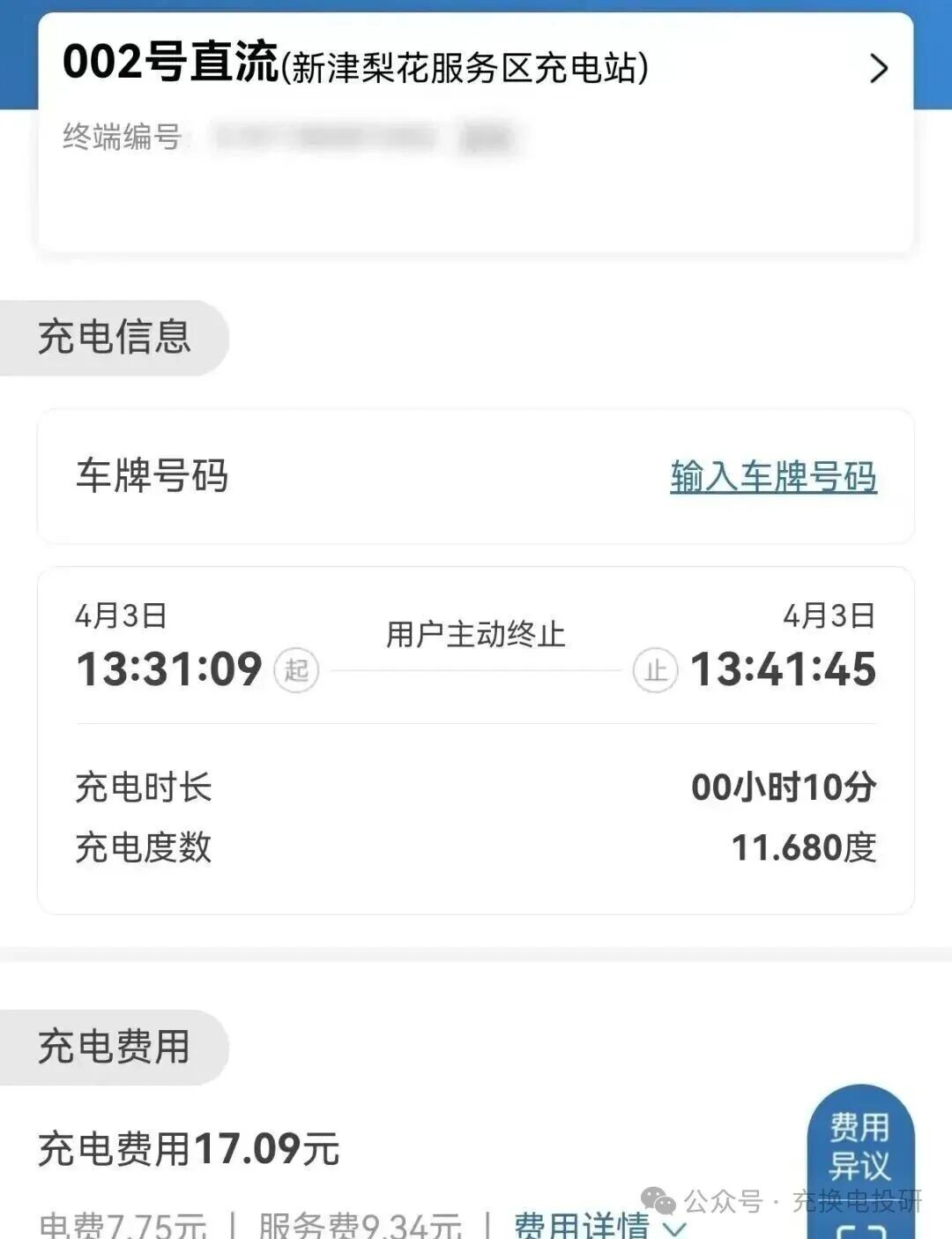 ▲在高速公路服务区充电后,服务费比电费更高。